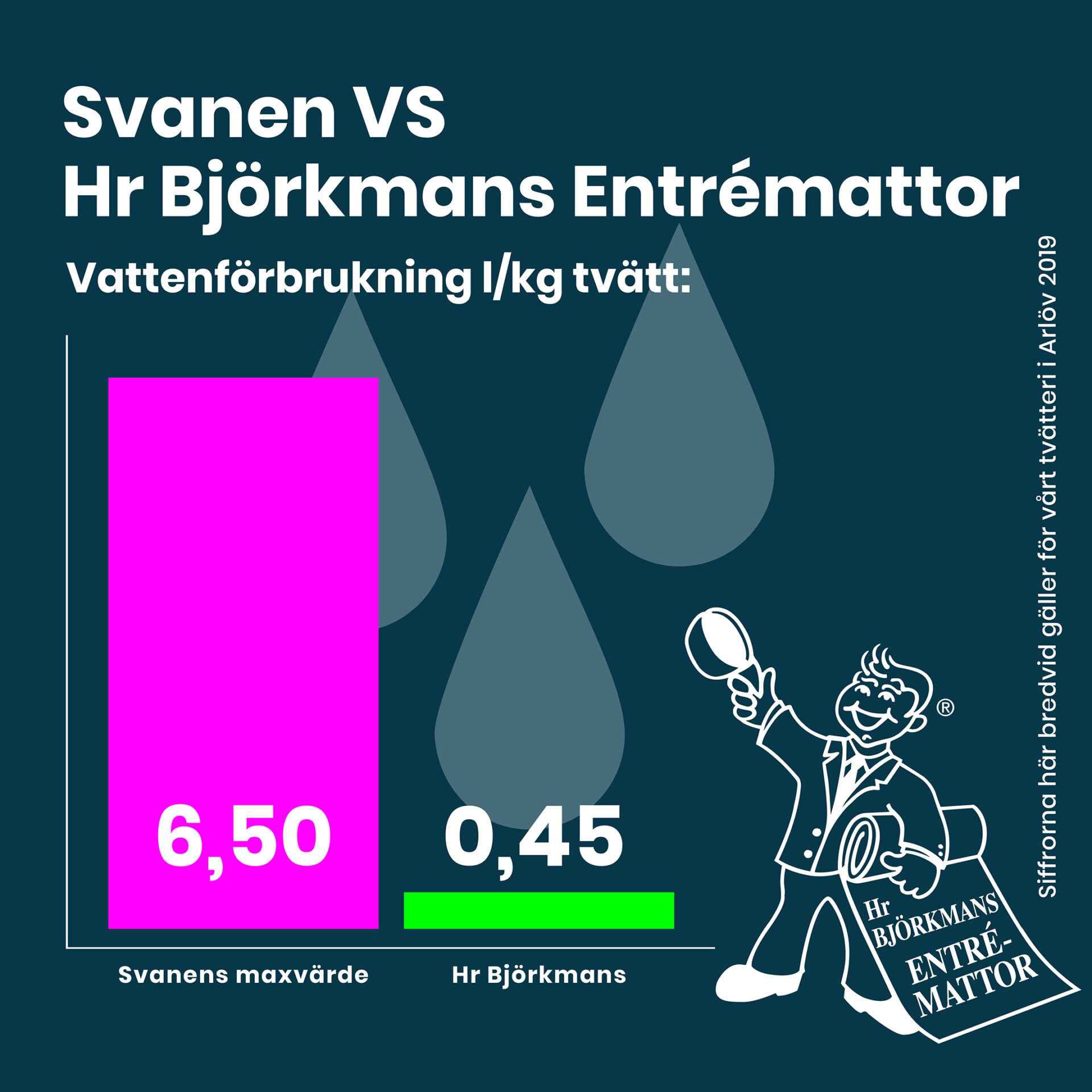Hr Björkmans entrémattor påverkar delmålet positivt eftersom de har utvecklat ett eget slutet tvättsystem för sina mattor där 98% av vattnet återanvänds. Det vattnet som tillförs är regnvattnet som har samlats in från anläggningens tak i en vattentank.